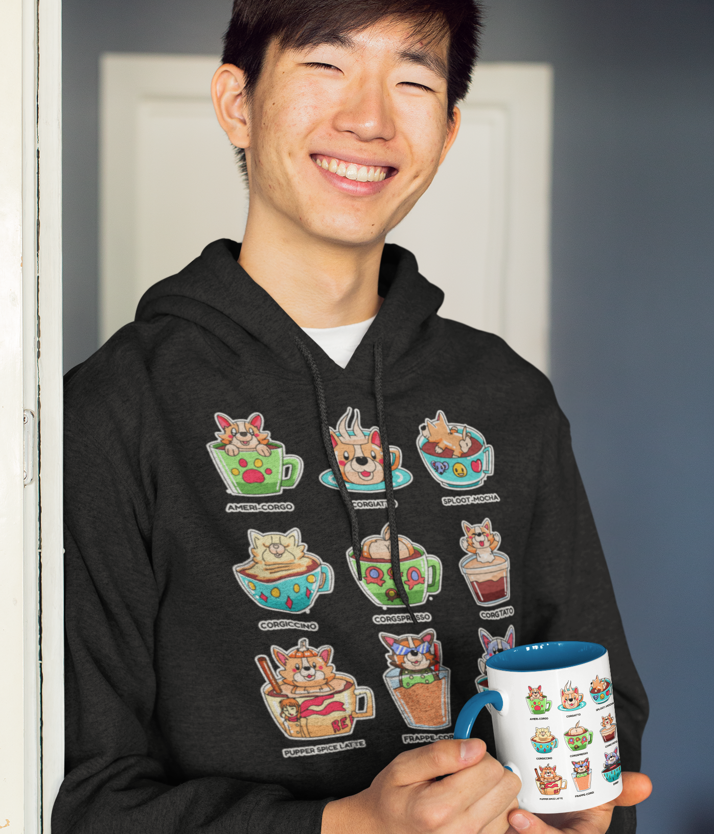 Look at our Corgffees! Our custom art has been designed for you! Would you like a corgiatto? A corgiccino? Maybe a corgspresso!? We got them all for you!
